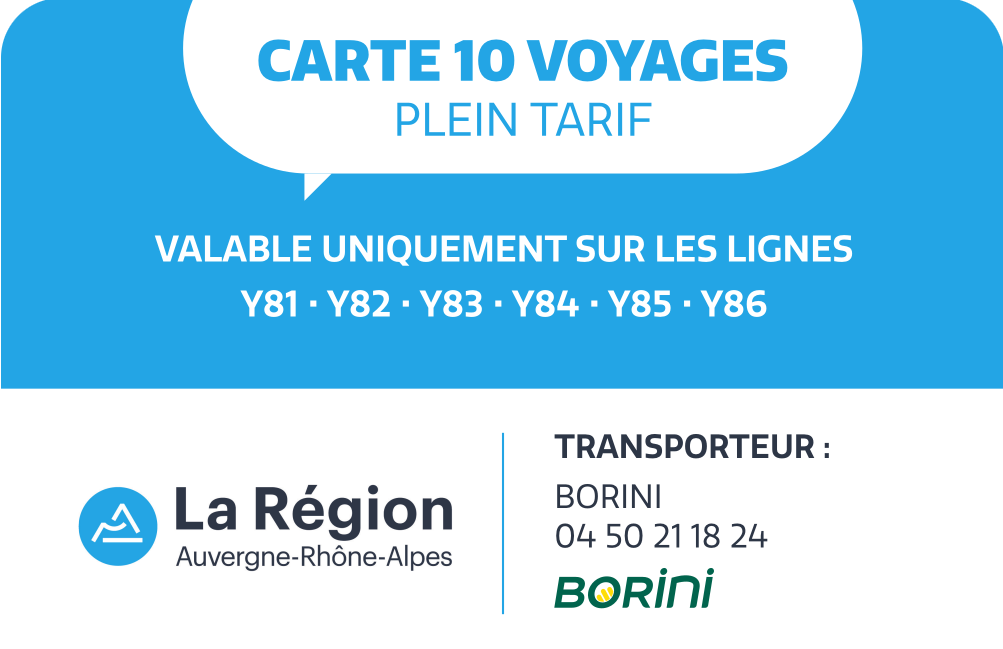 Seules les cartes 10 voyages peuvent être achetées à bord, en gare routière ou en ligne.